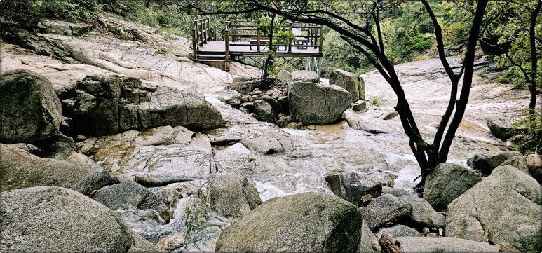 청류 흐르는 계곡 곁에 데크길이 반갑다.