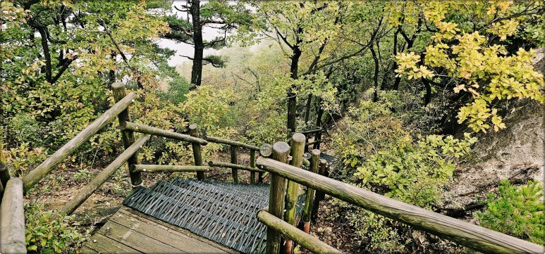 계곡으로 나갈 수 있는 계단통로도 만들어 놓았다.