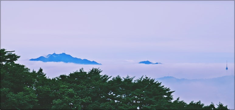 그 앞 남산은 긴 돛대를 세우고, 구름의 바다를 항해중이다.