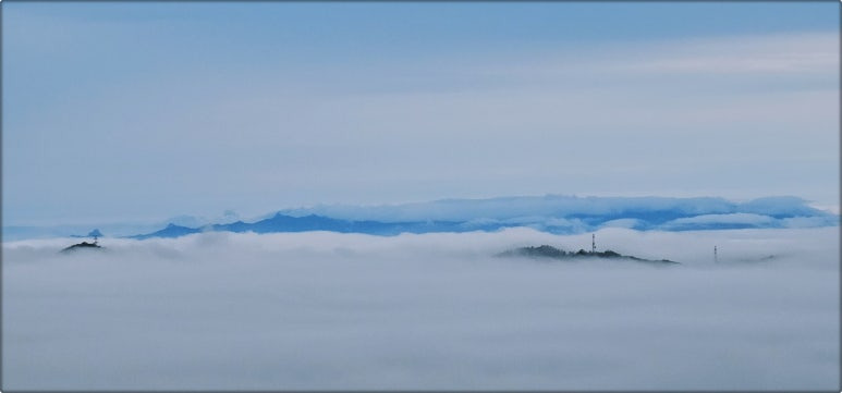 후다닥 그 뒤 보이는 산너울을 주어 담았다.