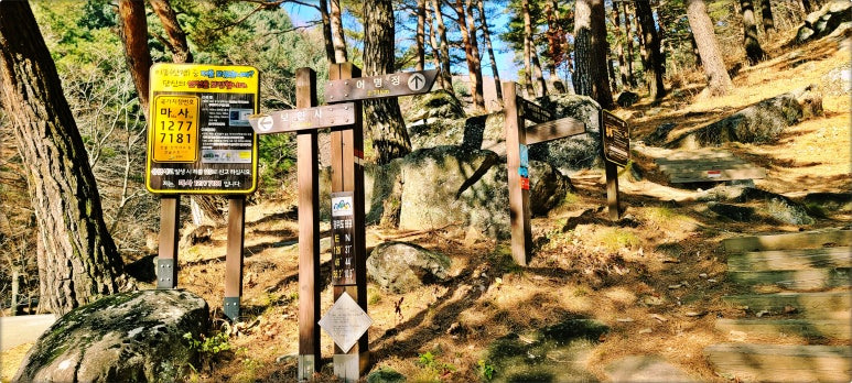 암릉을 돌아 오르는 길에 낙엽이 푹신하게 깔렸다.